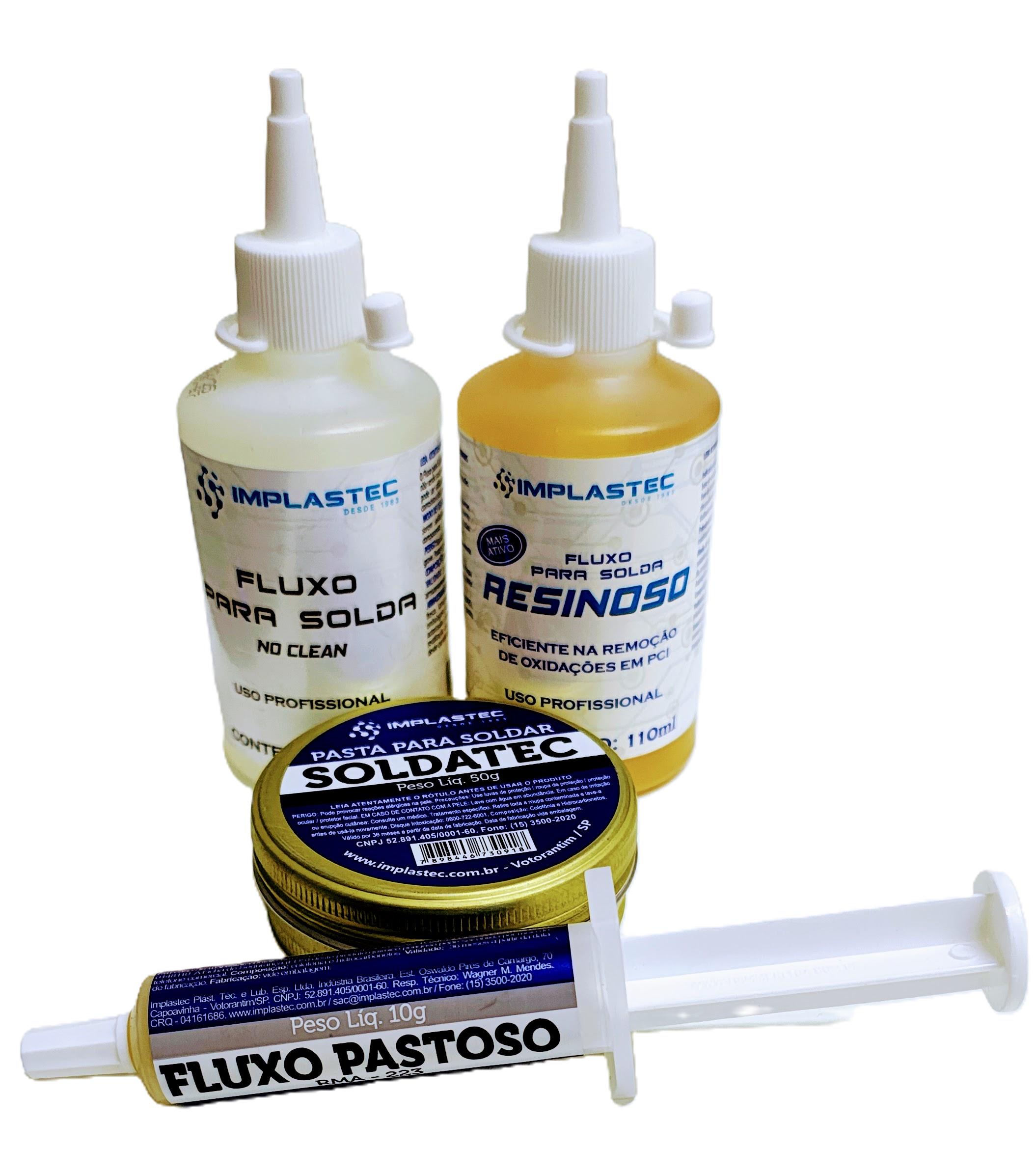 Fluxo Resinoso (110ml): Com ação mais forte, remove oxidações e garante soldas robustas e confiáveis.